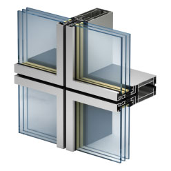 Классический фасад с видимым креплением заполнения штапиковыми профилями.